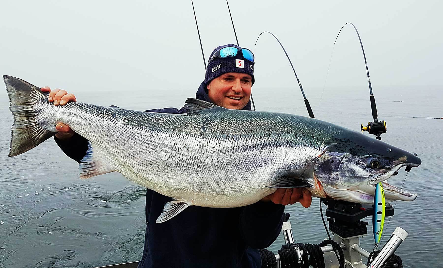 Der Lachs ist der König der Ostsee und für jeden Angler ein Traumfisch. Kein anderer Fisch löst so viel Faszination, Adrenalin und Spannung zugleich aus wie der Lachs. Der Lachs wird durch die Angeltechnik Schleppfischen, auch Schleppangeln oder Trolling genannt, vor der Küste Rügens befischt. Es gehören sehr viel Erfahrung, solide Grundkenntnisse und eine große Portion Glück dazu, um solch majestätischen Fisch zu überlisten. Des Drills der Kampfstarken Lachse vor Rügen können von 15 min bis zu einer Stunde oder länger dauern. Da ist der ganze Einsatz vom Angler und Kapitän gefragt. Dazu spielt das Wetter auf der rauen Ostsee eine zentrale Rolle. Bei starken Winden und hohen Wellen ist ein Lachs-Fischen/Schleppangeln nicht möglich. Bei gutem Wetter sind aber alle Chancen gegeben, diesen Traumfisch an Bord holen zu können. Bekanntlich ist der Lachs ein sehr guter Speisefisch - und wegen seines hohen Omega-3-Anteils auch ein sehr gesunder. Der Bestand an Lachsen vor Rügen ist sehr gut, da der Raubfisch hier von Oktober bis Mai ausreichend Heringe als Nahrung vorfindet. Vorwiegend werden Exemplare von 60- 110 cm Länge gefangen, aber auch richtige "Silberbarren" von 1,20 m - 1,35 m Länge sind möglich. Das sind aber eher Ausnahmen der Rubrik "sensationell".